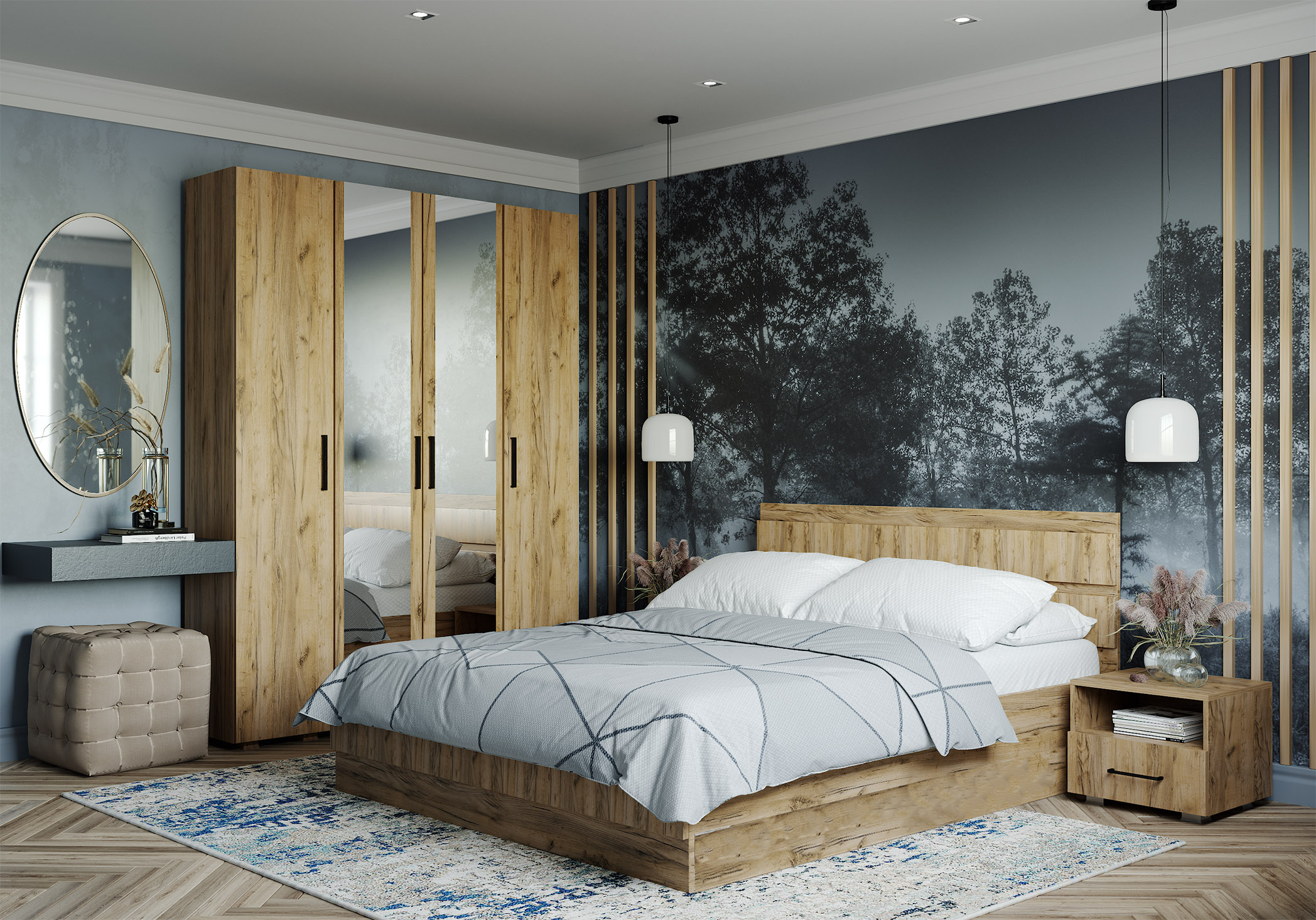 Առկա է Մահճակալին կից պահարան (2 հատ) Չափսեր (ԵxԼxԲ): 0.45x0.40x0.50 (մ)